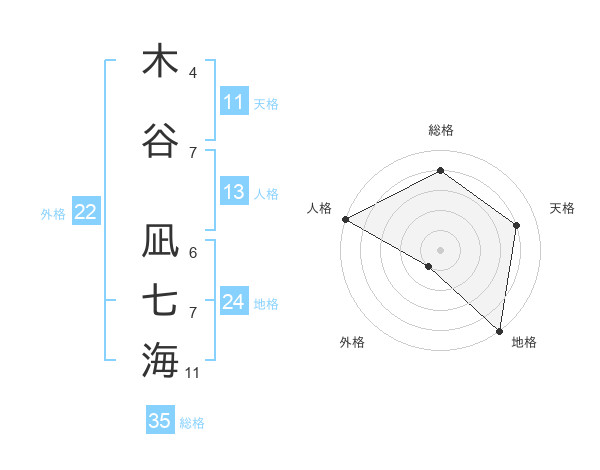 木谷 凪七海さんを姓名の画数から五運を鑑定