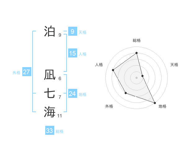 泊 凪七海さんを姓名の画数から五運を鑑定