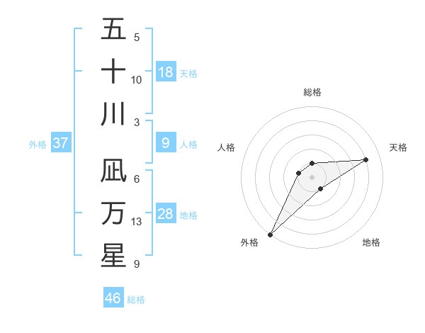 五十川 凪万星さんの総格は46画の1点!