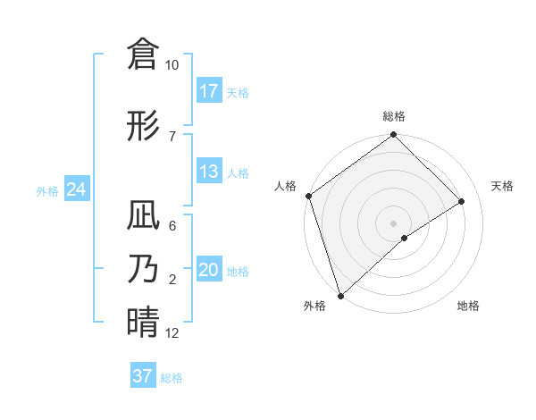 倉形 凪乃晴さんの総格は37画の5点!
