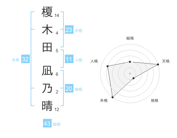榎木田 凪乃晴さんの天格は23画の5点!