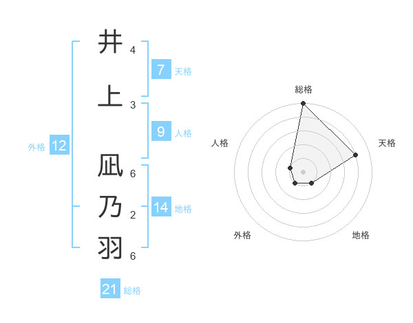 井上 凪乃羽さんを姓名の画数から五運を鑑定