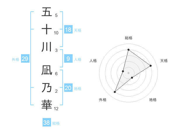 五十川 凪乃華さんを姓名の画数から五運を鑑定