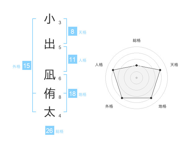 小出 凪侑太さんの総格は26画の2点!