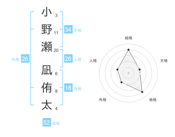 小野瀬 凪侑太さんを姓名の画数から五運を鑑定