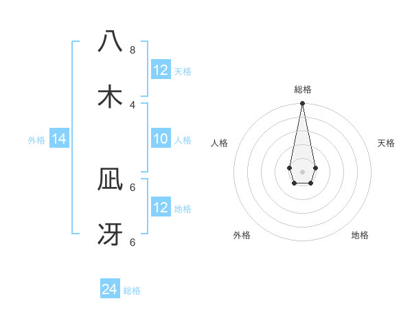 八木 凪冴さんの総格は24画の5点!