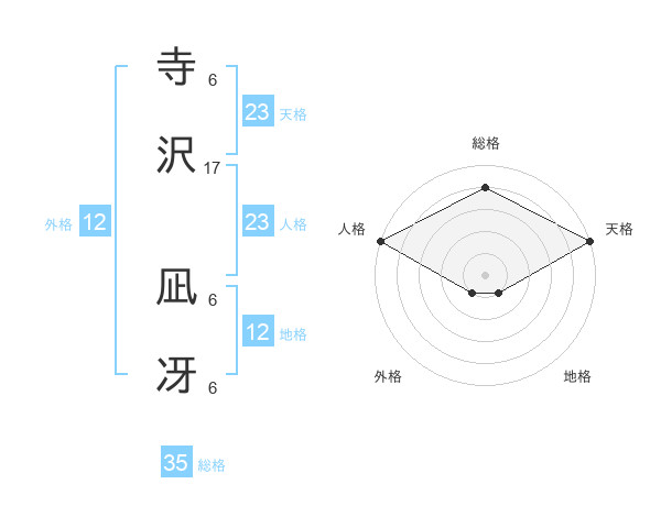 寺沢 凪冴さんを姓名の画数から五運を鑑定