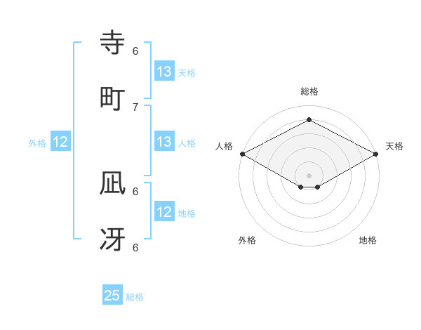 寺町 凪冴さんの地格は12画の1点!
