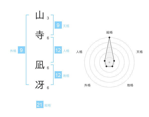 山寺 凪冴さんの総格は21画の5点!