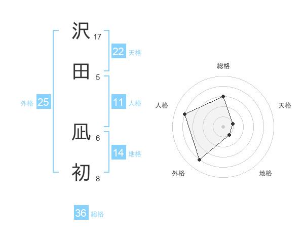 沢田 凪初さんを姓名の画数から五運を鑑定