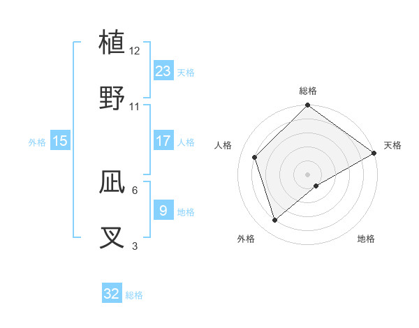 植野 凪叉さんの総格は32画の5点!
