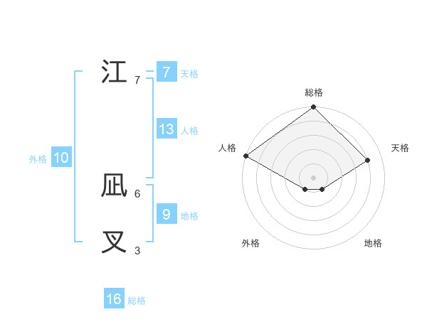 江 凪叉さんの総格は16画の5点!
