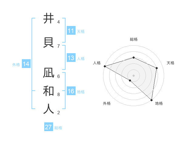 井貝 凪和人さんの総格は27画の3点!