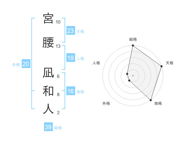 宮腰 凪和人さんを姓名の画数から五運を鑑定