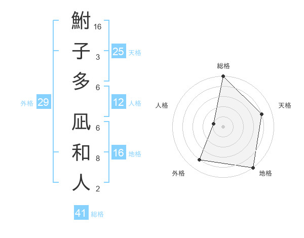 鮒子多 凪和人さんの総格は41画の5点!