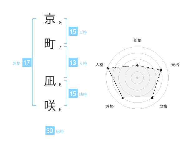 京町 凪咲さんの天格は15画の4点!