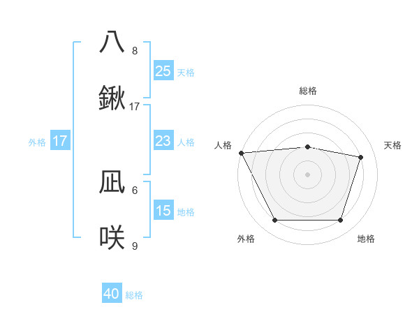 八鍬 凪咲さんの外格は17画の4点!