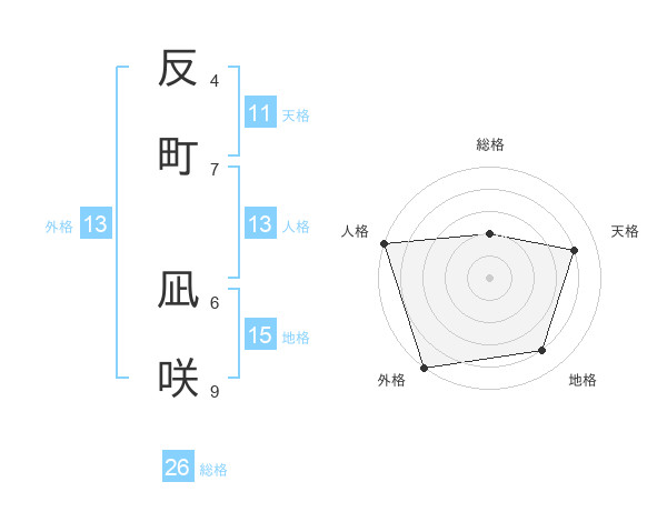反町 凪咲さんの外格は13画の5点!