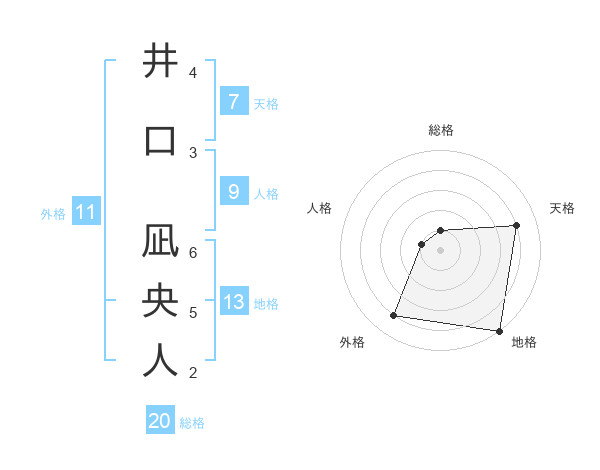 井口 凪央人さんの地格は13画の5点!