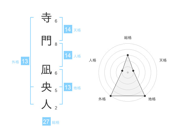 寺門 凪央人さんの外格は13画の5点!
