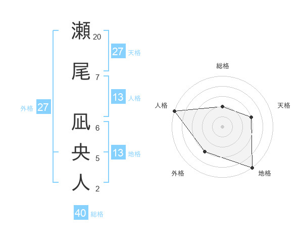 瀬尾 凪央人さんの地格は13画の5点!
