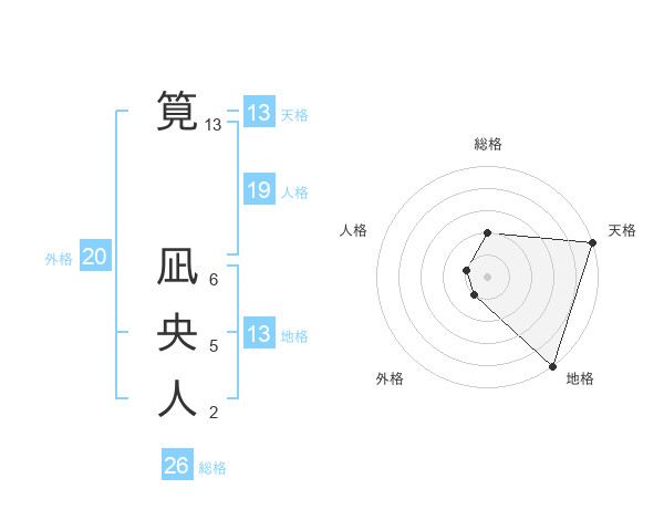 筧 凪央人さんの天格は13画の5点!