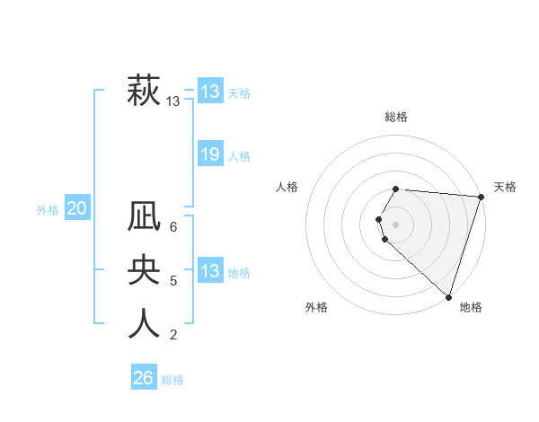 萩 凪央人さんの総格は26画の2点!