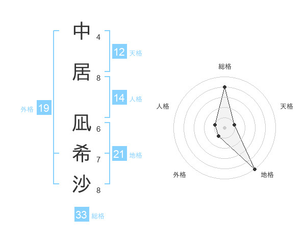 中居 凪希沙さんを姓名の画数から五運を鑑定