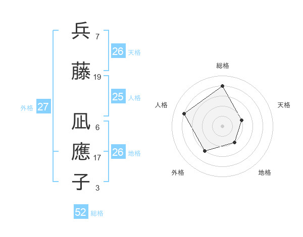 兵藤 凪應子さんの総格は52画の4点!