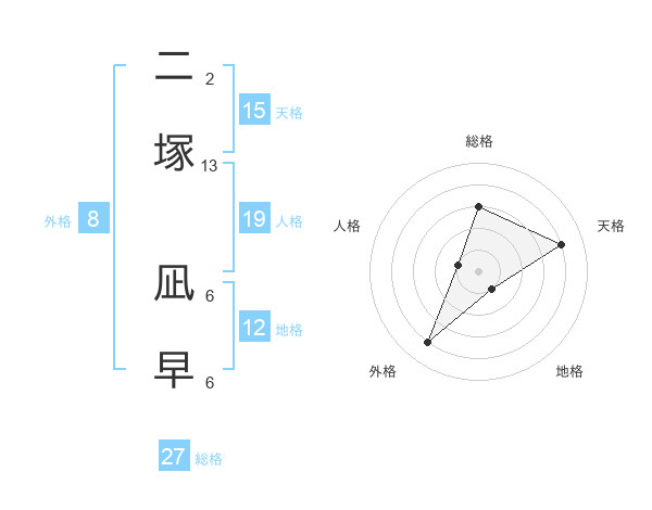 二塚 凪早さんを姓名の画数から五運を鑑定