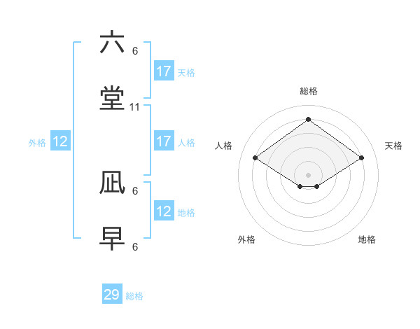 六堂 凪早さんの外格は12画の1点!