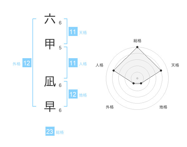 六甲 凪早さんを姓名の画数から五運を鑑定