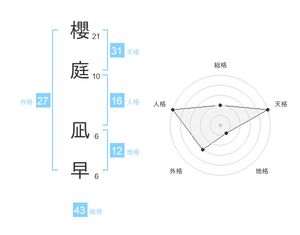 櫻庭 凪早さんの天格は31画の5点!