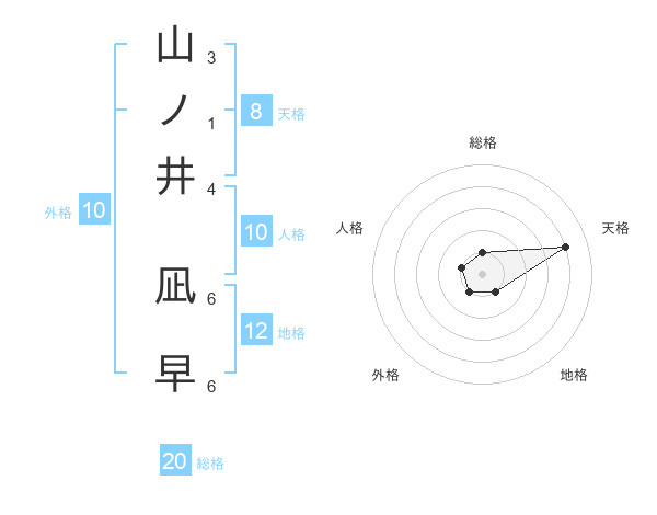 山ノ井 凪早さんの総格は20画の1点!