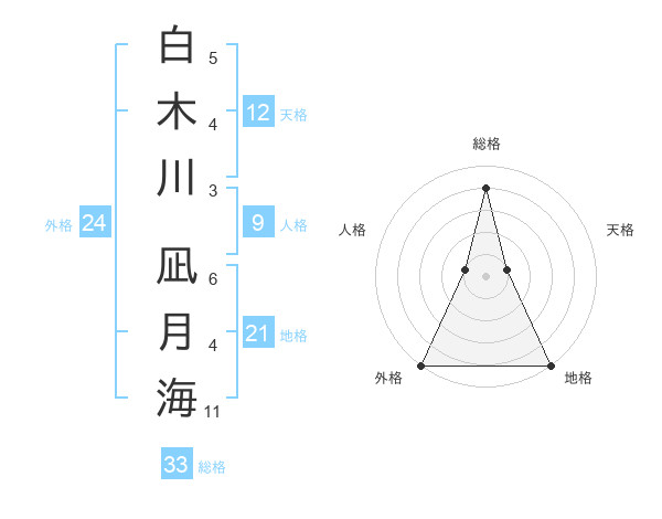 白木川 凪月海さんを姓名の画数から五運を鑑定