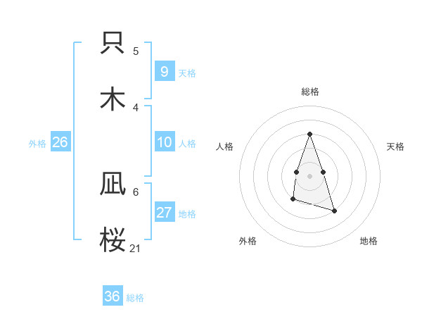 只木 凪桜さんの地格は27画の3点!