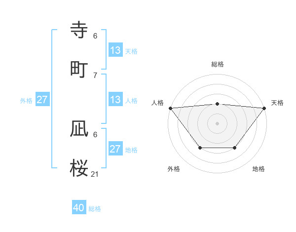 寺町 凪桜さんの天格は13画の5点!
