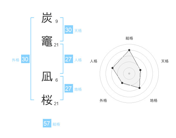 炭竈 凪桜さんを姓名の画数から五運を鑑定