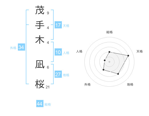 茂手木 凪桜さんの総格は44画の2点!