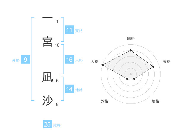 一宮 凪沙さんを姓名の画数から五運を鑑定