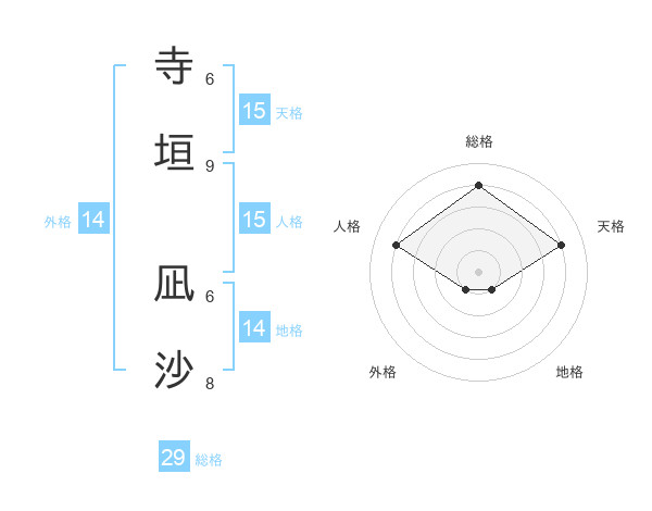 寺垣 凪沙さんの総格は29画の4点!