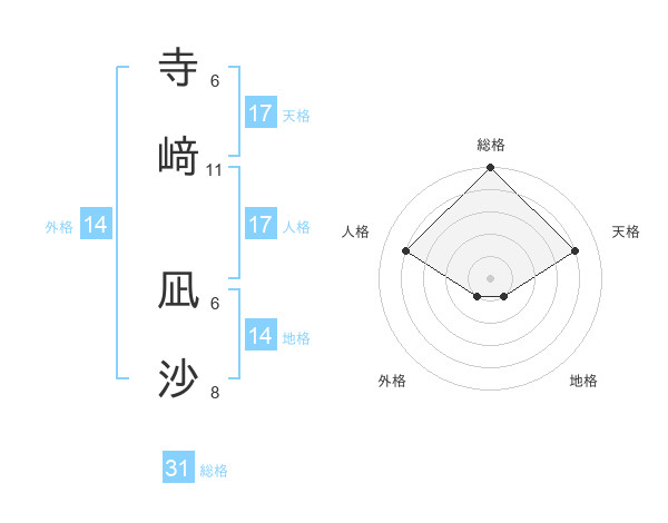 寺﨑 凪沙さんを姓名の画数から五運を鑑定