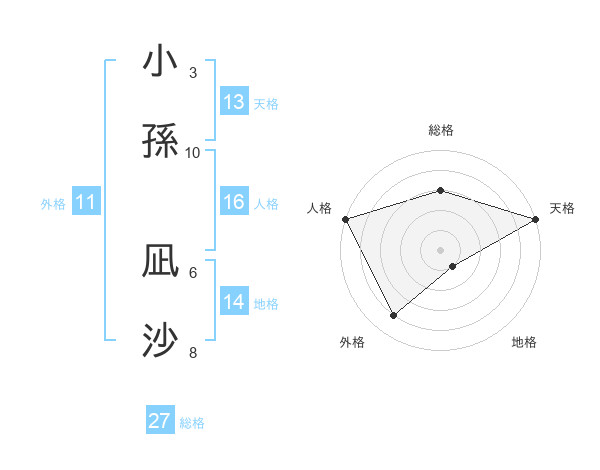 小孫 凪沙さんの天格は13画の5点!