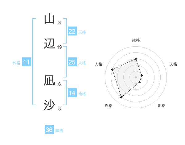 山辺 凪沙さんの天格は22画の1点!