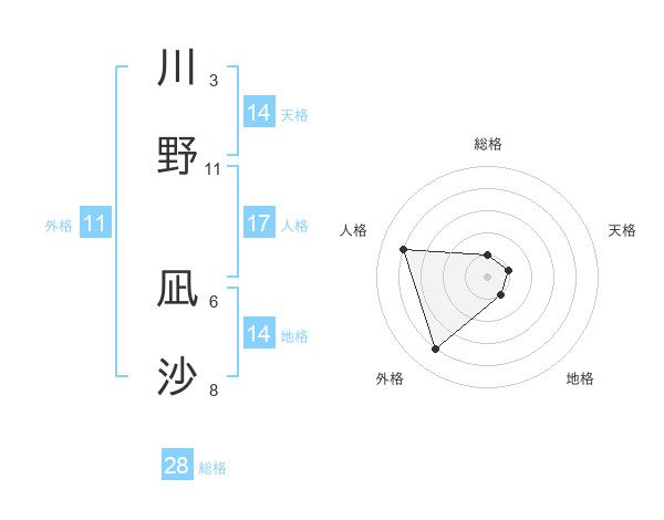 川野 凪沙さんの外格は11画の4点!