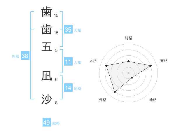 歯歯五 凪沙さんの外格は38画の4点!