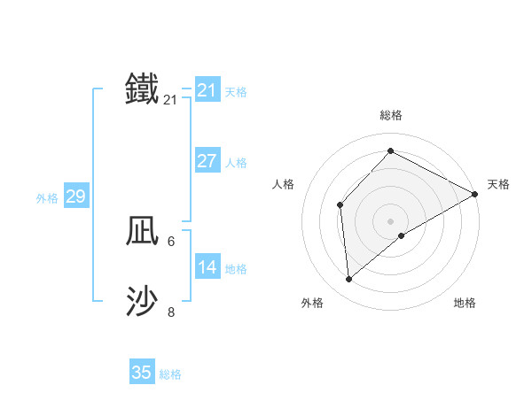 鐵 凪沙さんを姓名の画数から五運を鑑定