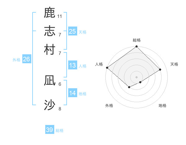 鹿志村 凪沙さんの総格は39画の5点!