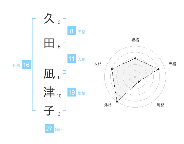 久田 凪津子さんを姓名の画数から五運を鑑定