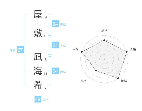 屋敷 凪海希さんの天格は24画の5点!